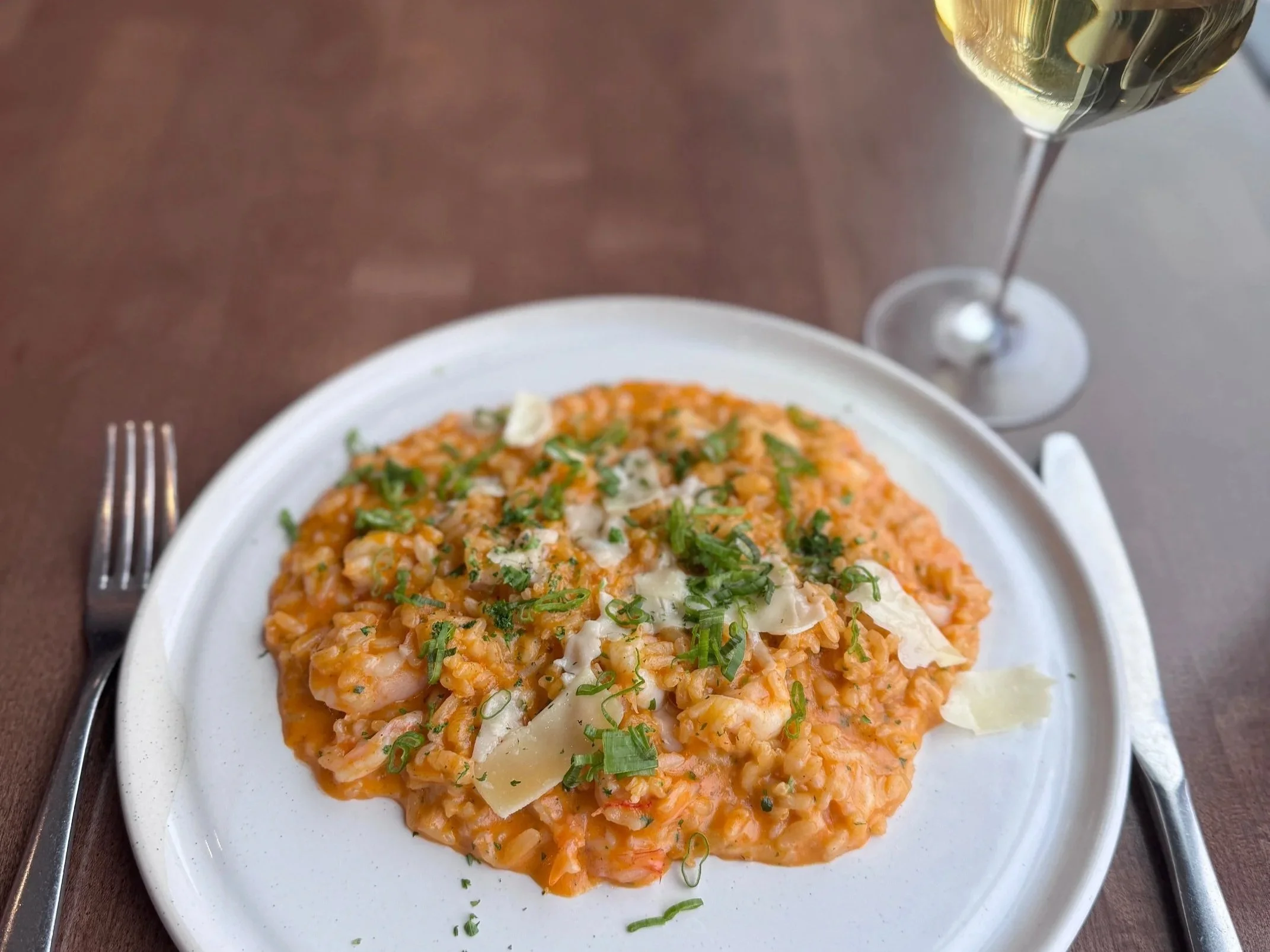 Poached lobster, shrimp, truffle compound butter with a lemon balm!